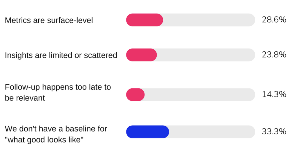 The strongest signal was clear: many teams still do not have a baseline for what good looks like, and insights are often limited or scattered. That set the tone for the session: the gap is not data volume. It is measurement design.