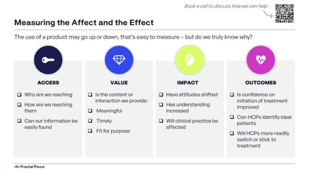 Pierre also shared how this reframes success in practical terms: teams stop saying “we had 9,000 people on the booth,” and start saying “we have 300 engaged HCPs we need to follow up with.”